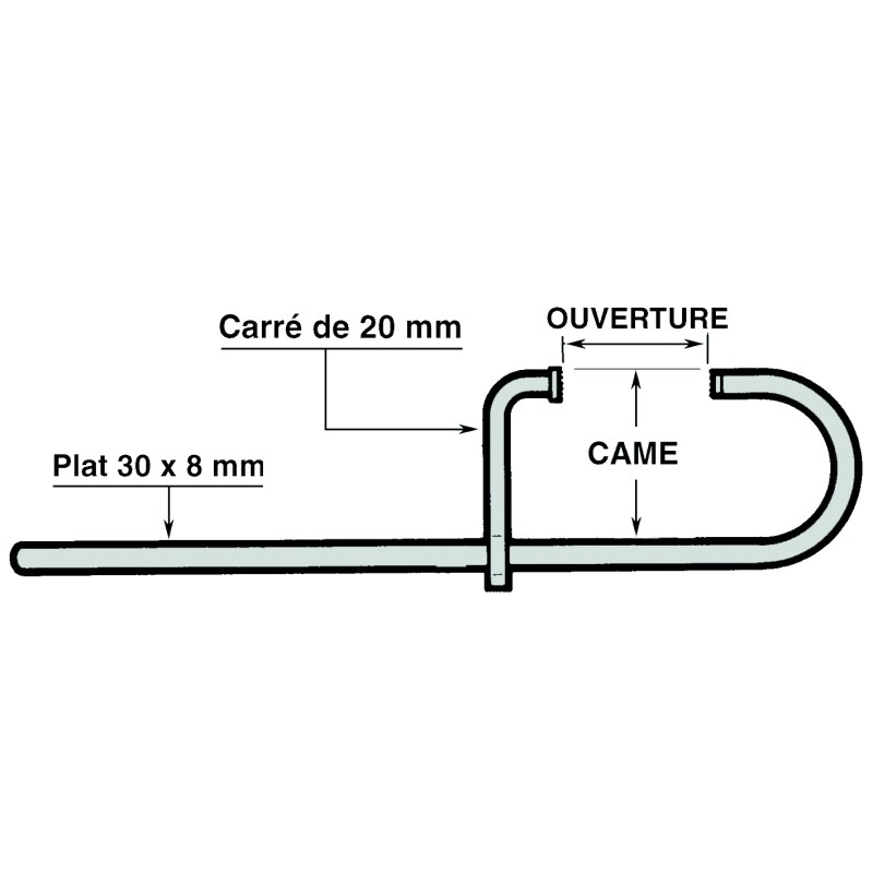 Serre-joint came 170 Longueur : 80 cm Ouverture : 60 cm Patin de 20 x 20 mm Plat de 30x8 mm Poids : 2,7 kg