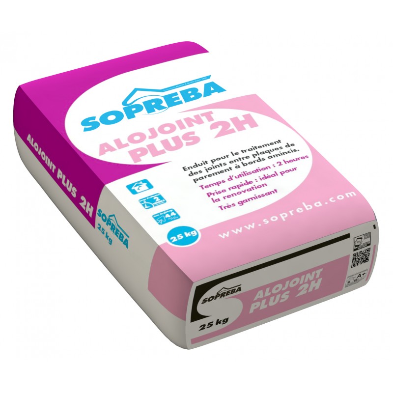ALOJOINT PLUS 2 HEURES est un enduit prise très rapide en poudre pour la réalisation des joints entre plaques de plâtre. Il permet une deuxième passe environ deux heures après application.
