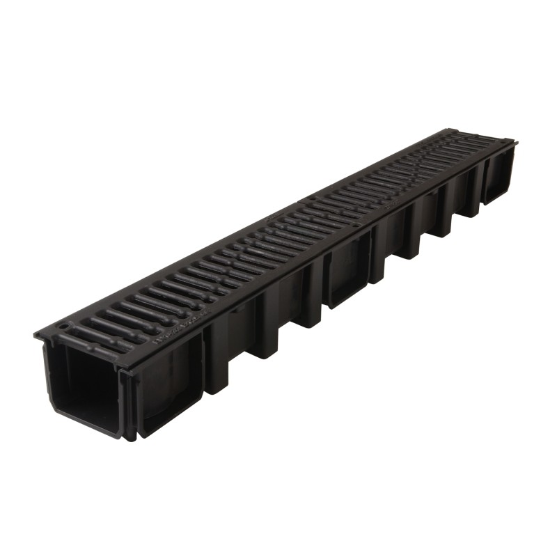 1M CANIVEAU en PP noir - LARGEUR 130MM 2 GRILLES FONTE VISSEES