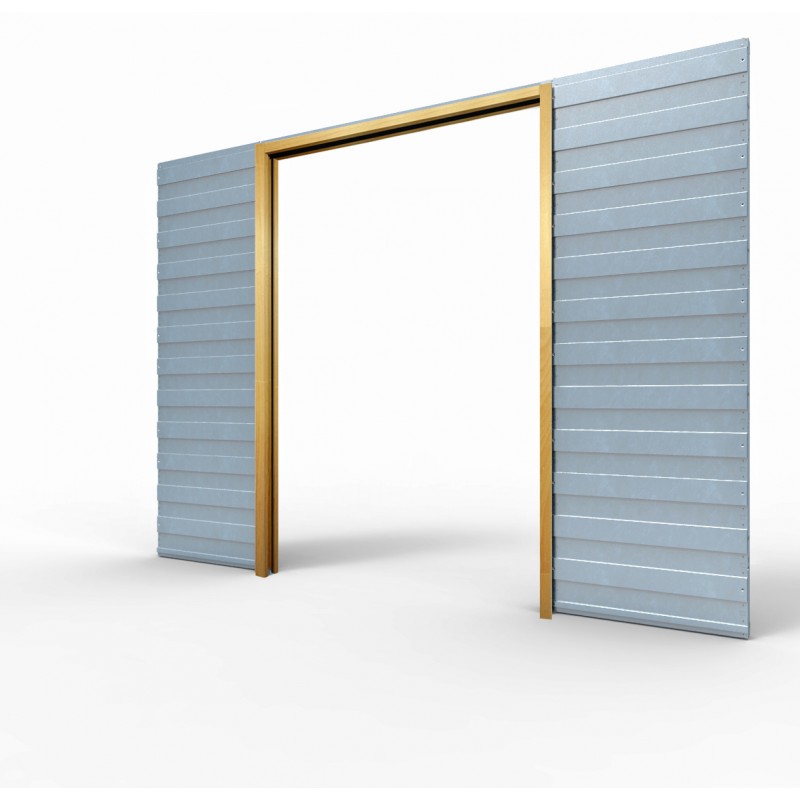 Kit à associer à 2 châssis porte simple. Prédécoupes et préperçages intégrés sur chaque châssis simple pour la transformation. Autre finition disponible : kit de transformation avec habillage MDF enrobé blanc ou sans habillage