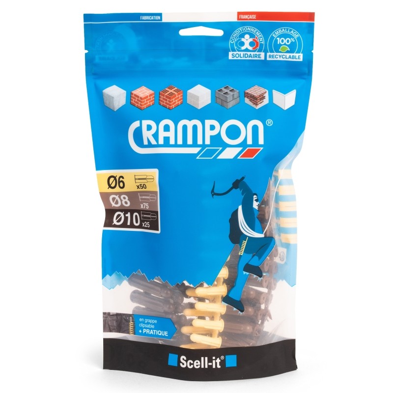 Assortiment de 150 Crampons en grappe en diamètre 6 - 8 et 10, pour tous types de murs et tous types de vis.