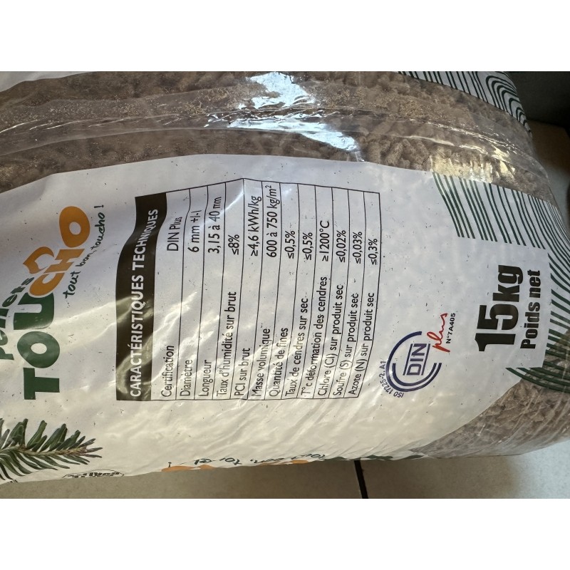 DIN Plus sac de 15 kg 100% bois local pouvoir calorifique maxi granulés haute qualité