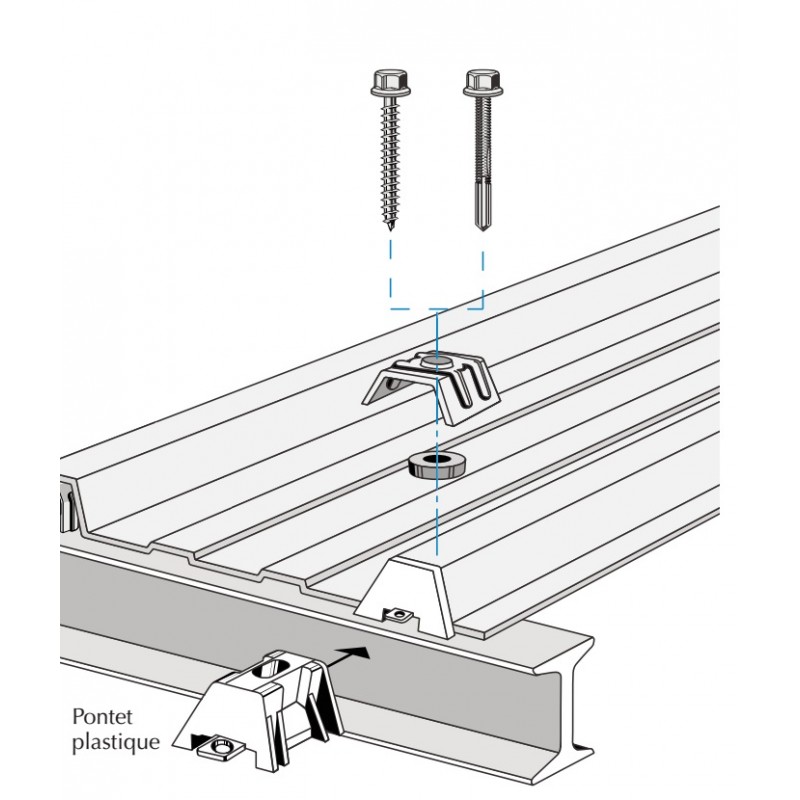 Pontet plastique pour support d'onde de plaques translucides forme bac acier.