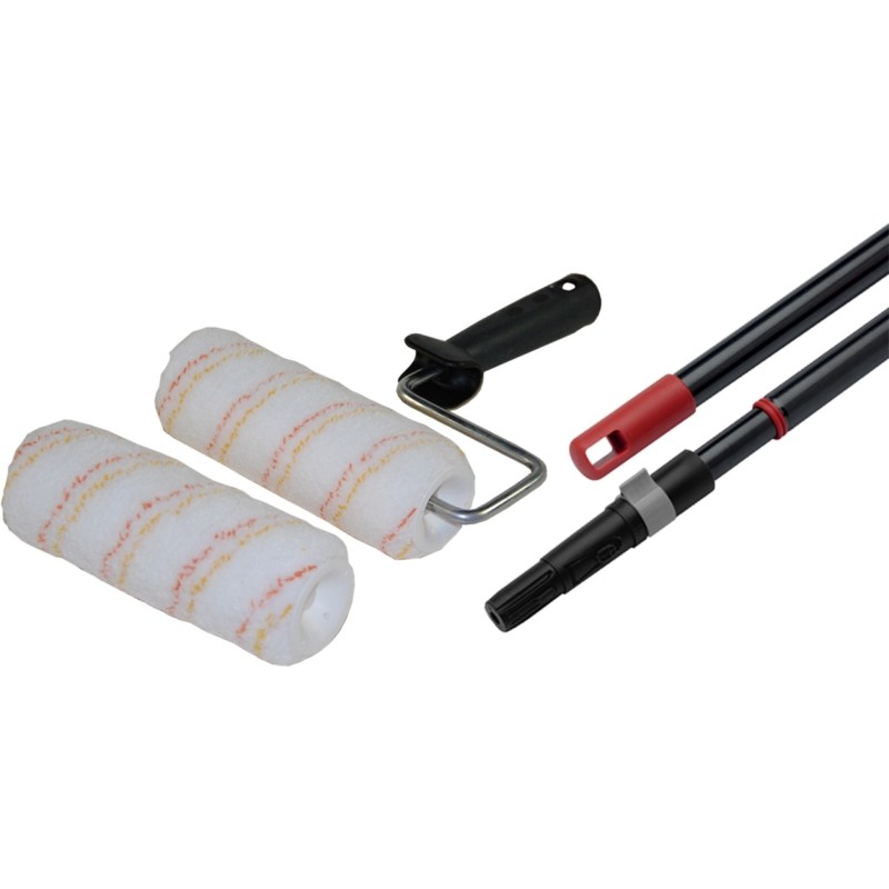 Ensemble rouleaux recharge murs et plafonds spécial finition satin. Rouleau 180 mm avec une recharge, fibres courtes. Perche télescopique 96cm à 160cm.