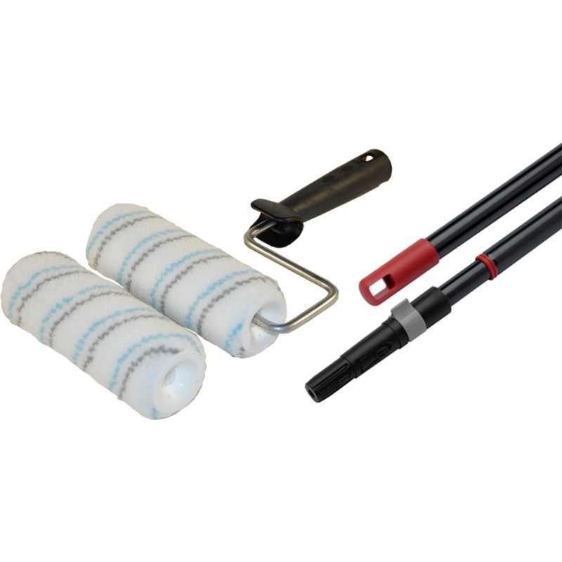 Ensemble rouleaux recharge murs et plafonds spécial finition velours. Rouleau 180 mm avec une recharge, fibres courtes. Perche télescopique 96cm à 160cm.