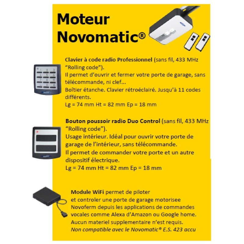 Pour l'achat d'une porte de garage Motorisée Novomatic ou SOMFY