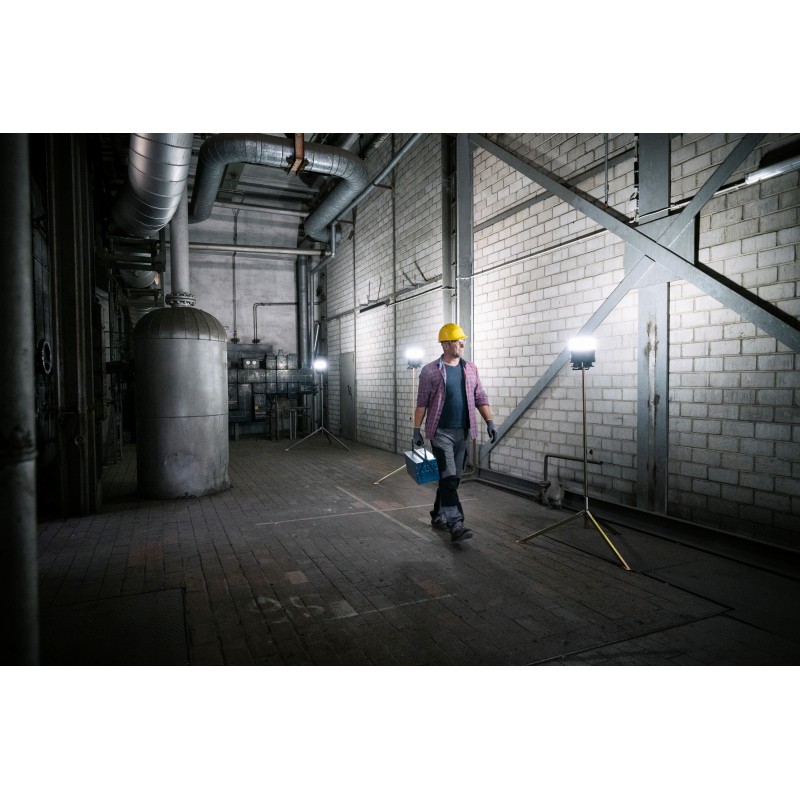 Contenu du colis : 1x Projecteur LED portable rechargeable 360° 3000 lumens + 1x notice + 1x Batterie Li-lon 11,1V/4,4Ah intégrée + 1m câble de raccordement avec chargeur AC
