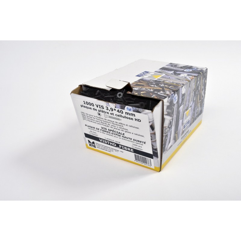 VIS SPECIALE POUR LA FIXATION DES PLAQUES DE PLATRE HAUTE DURETE AVEC FIBRE DE CELLULOSE. GEOMETRIE DE LA TETE ADAPTEE POUR UN ENFONCEMENT OPTIMAL. EMBOUT DE VISSAGE CARRE FOURNIS DANS CHAQUE BOITE.
