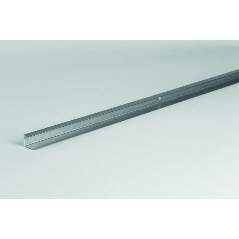 Cornière d'angle en U asymétrique permettant de maintenir les fourrures sans sertissage ni vis.
