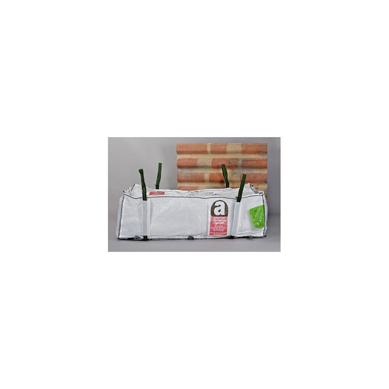 Big bag pour l'amiante liée (plaques fibrociment, tuyaux, bardages...). Dimensions 3100 x 1100 x 300 mm, marquage réglementaire amiante.